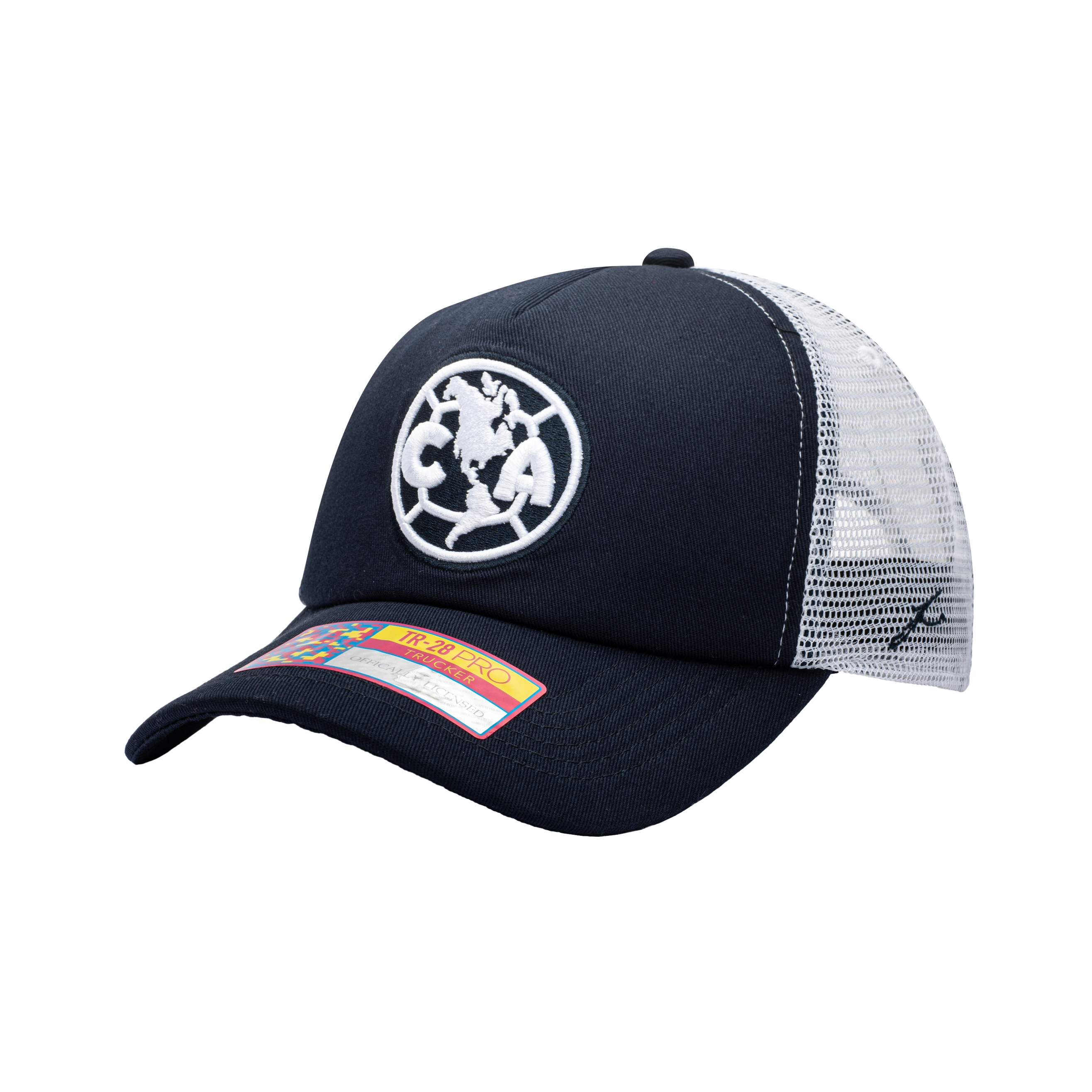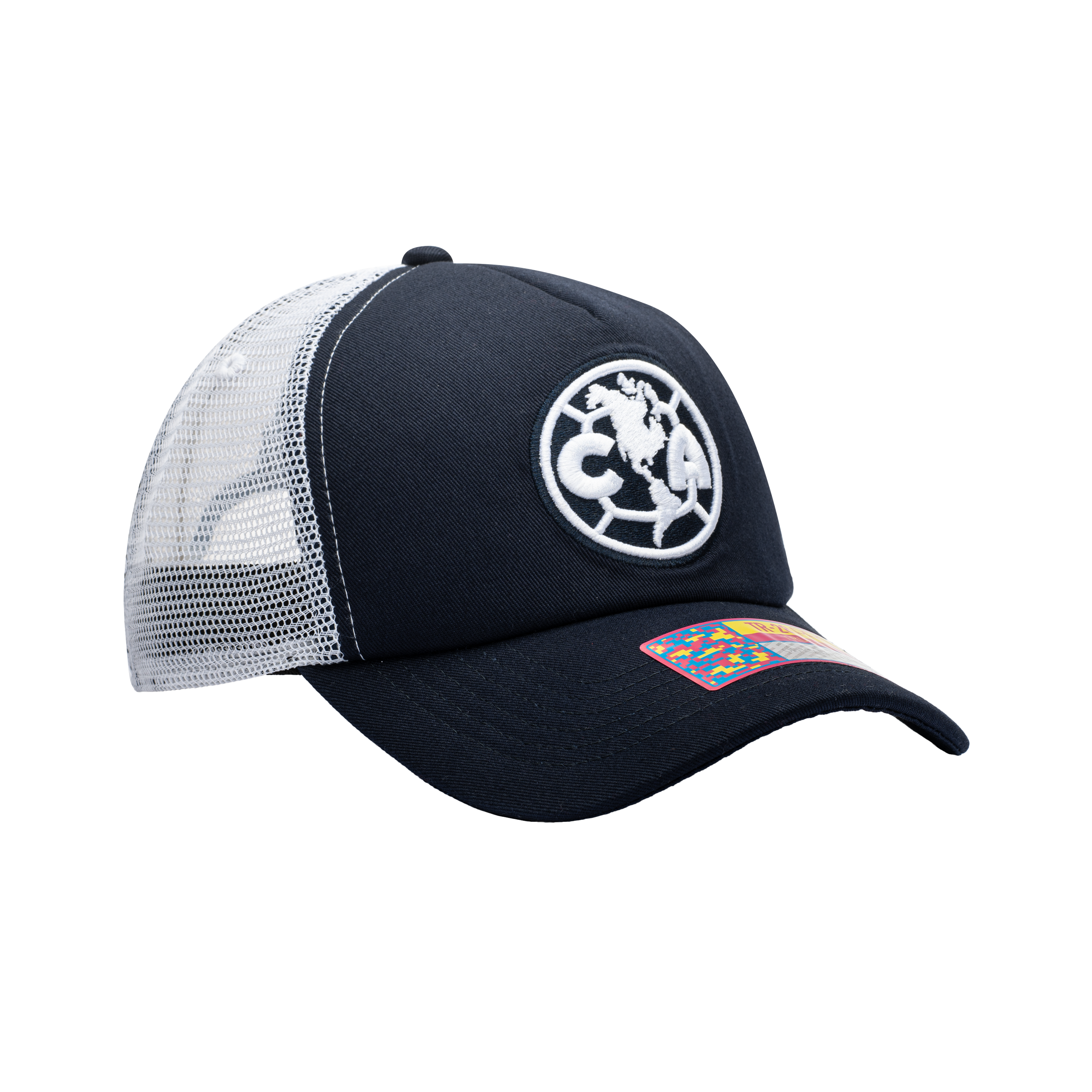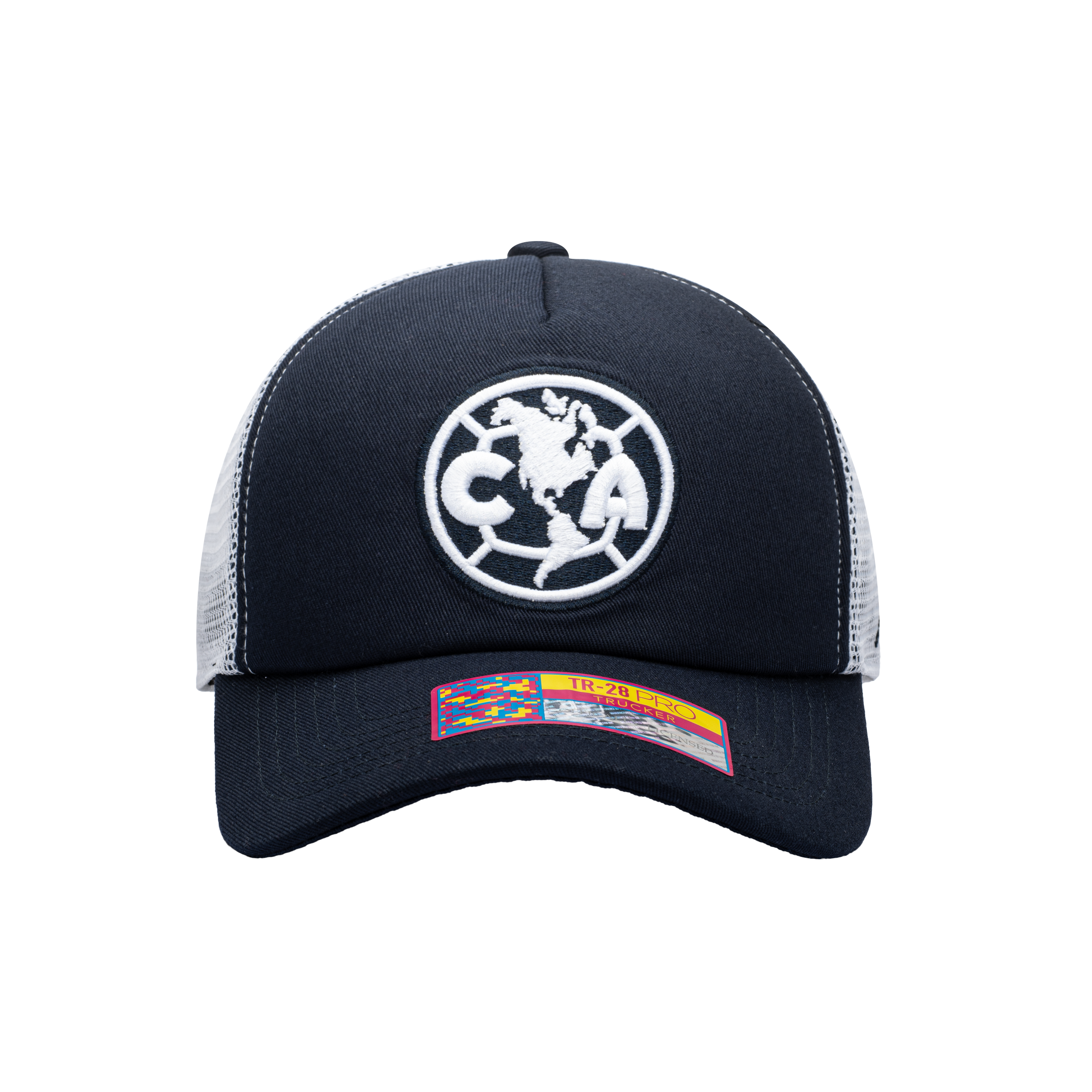 4- Description- The Club America Fog Trucker hat lets you show your support in style for "Las Aguilas", a Mexican team which is considered one of the most successful teams in the North American continent! This Fog hat features a front 3D embroidery of the team logo and a sonic weld suede wrap on the back. The logo is embroidered in white to let your team logo pop on the hat. This hat also features a mesh back for a different look. - CAM-2028-5234