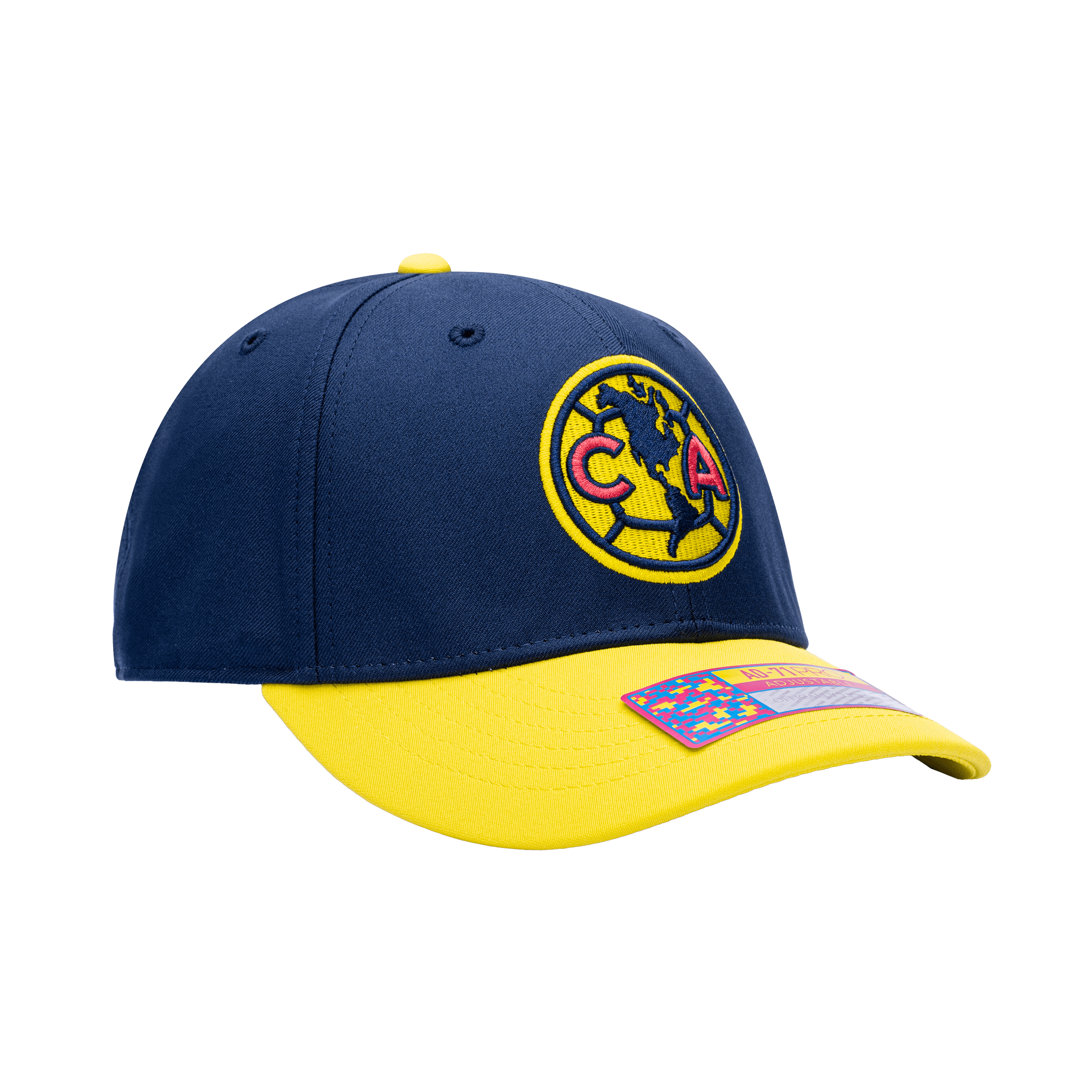 The Club America Core Adjustable hat lets you show your support in style for "Las Aguilas", a Mexican team which is considered one of the most successful teams in the North American continent! This hat features a front 3D embroidery of the team logo and a sonic weld suede wrap label on the back. It also allows you to make use of team colors as the crown is a contrasting color from the peak and top button.