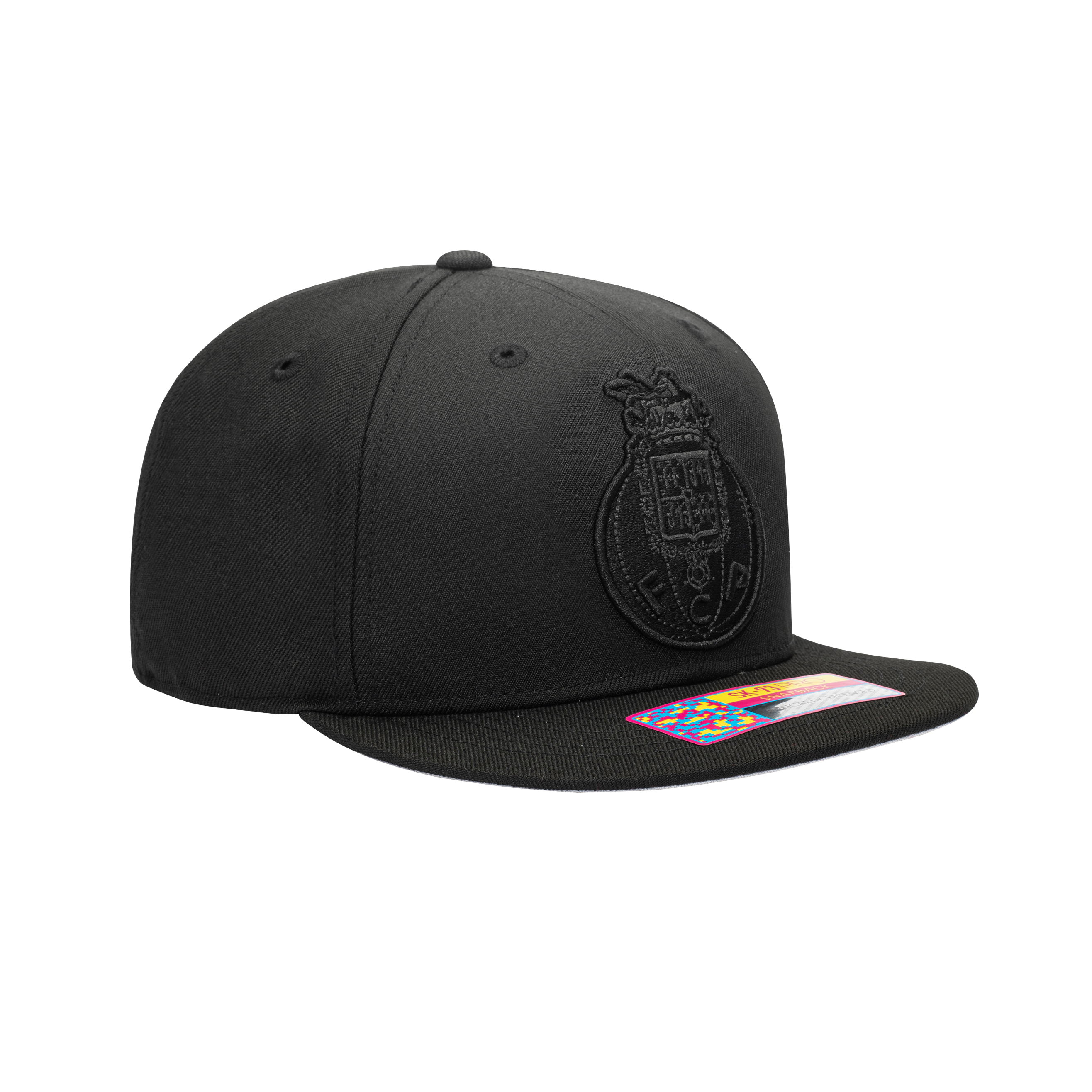- Description- The FC Porto Dusk Snapback hat lets you show your support in style for the "Dragoes", one of the most decorated Portuguese teams! This Dusk hat features a front 3D embroidery of the team logo as well as a back embroidery of the year the team was founded. It uses black embroidery on a black hat to subtly show your support for your team! The hat has a contrasting grey underpeak. - FCP-2093-5232