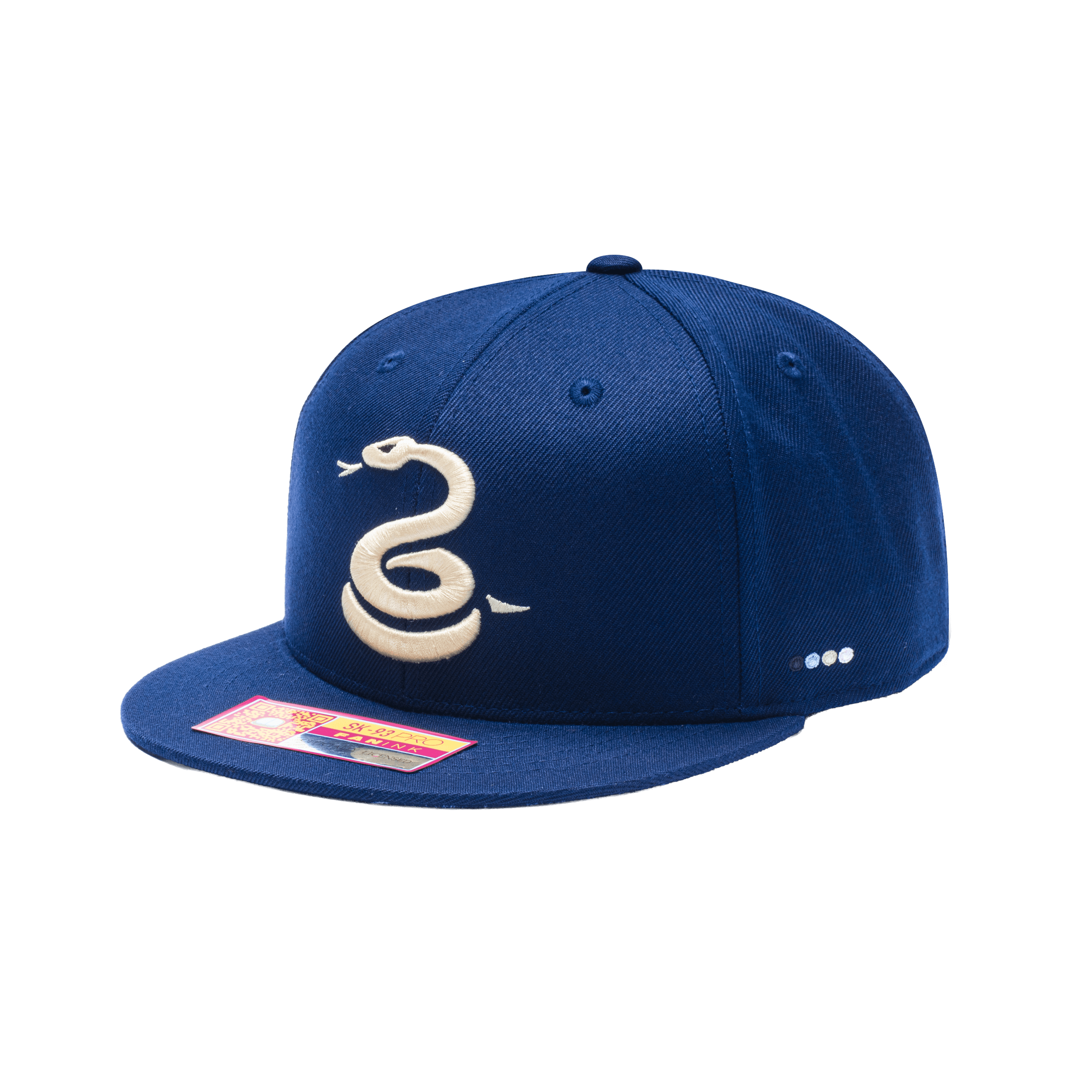 Fan Ink Snapbacks are flat brim, six-panel construction, with structured design. This shape gives the snapback its distinctive look.
