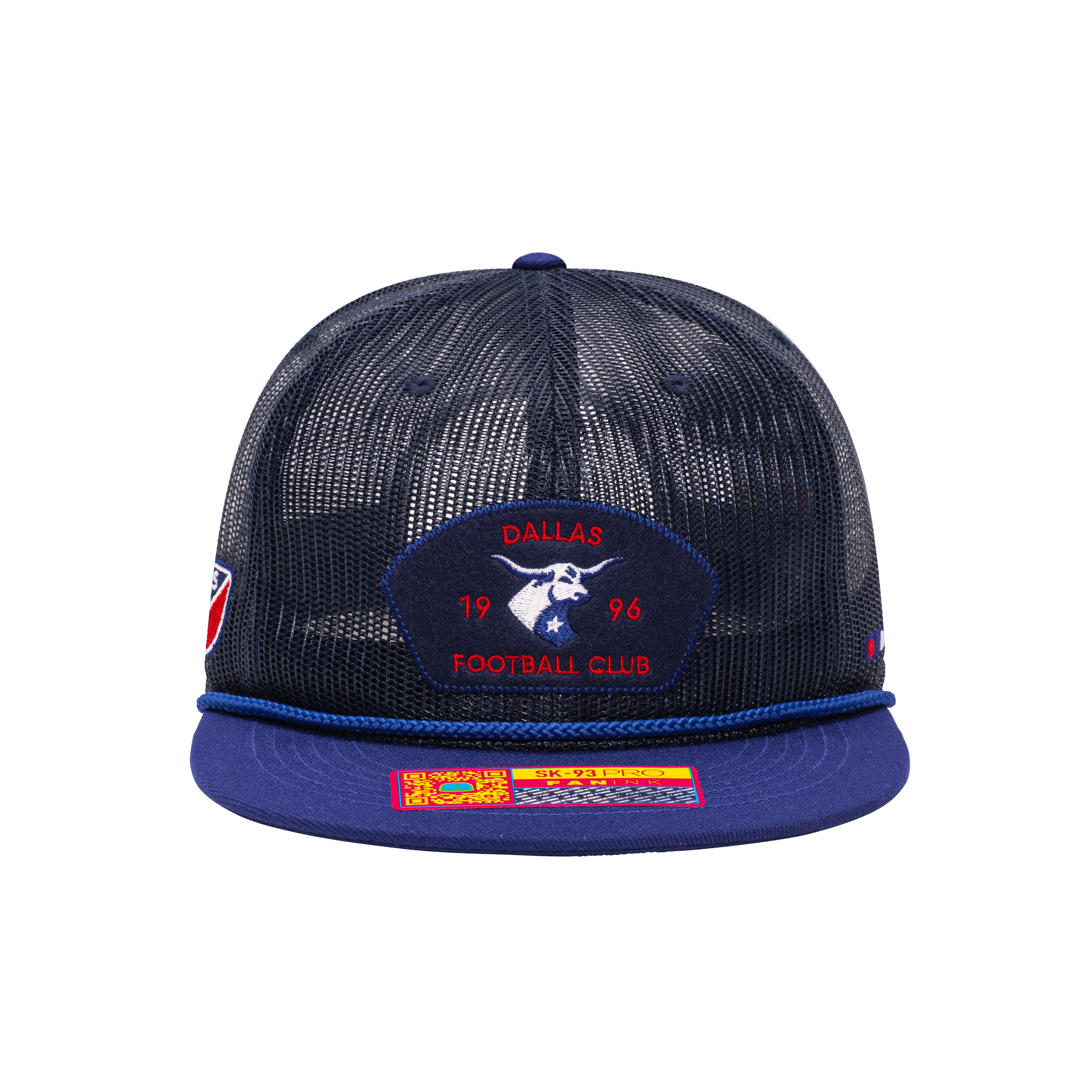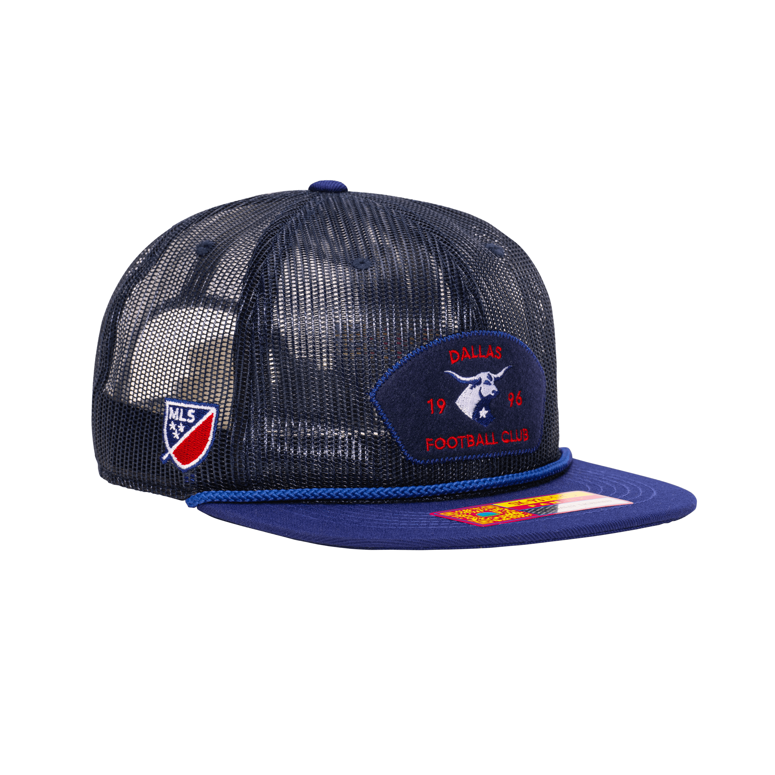Mesh crown. Front embroidered patch. Side MLS shield in club colours. Sonic weld tab at back.